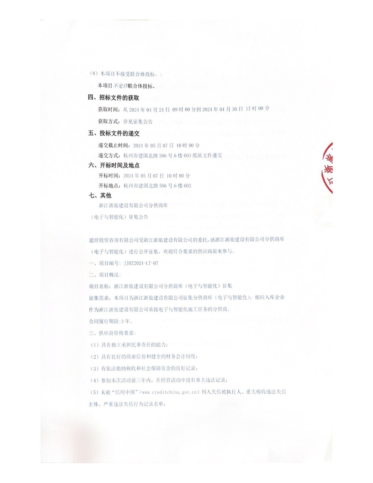 浙江浙旅建設(shè)有限公司分供商庫(kù)(電子與智能化)征集公告