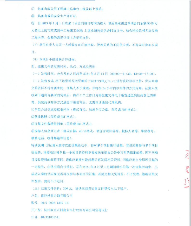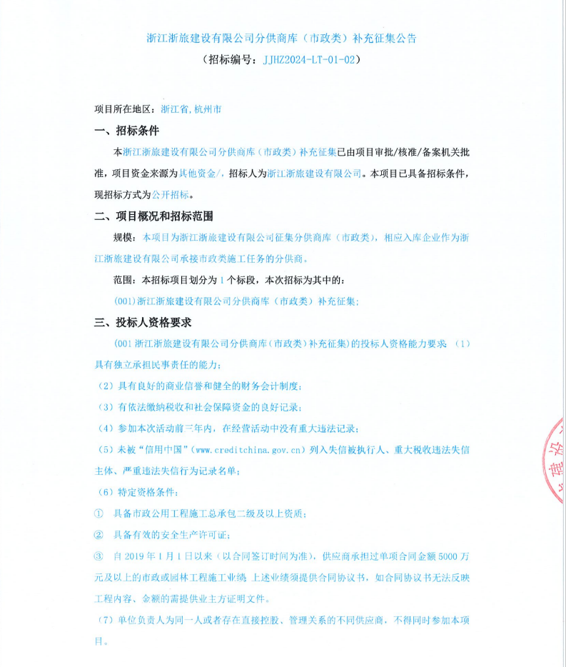 浙江浙旅建設(shè)有限公司分供商庫(市政類)補(bǔ)充征集公告