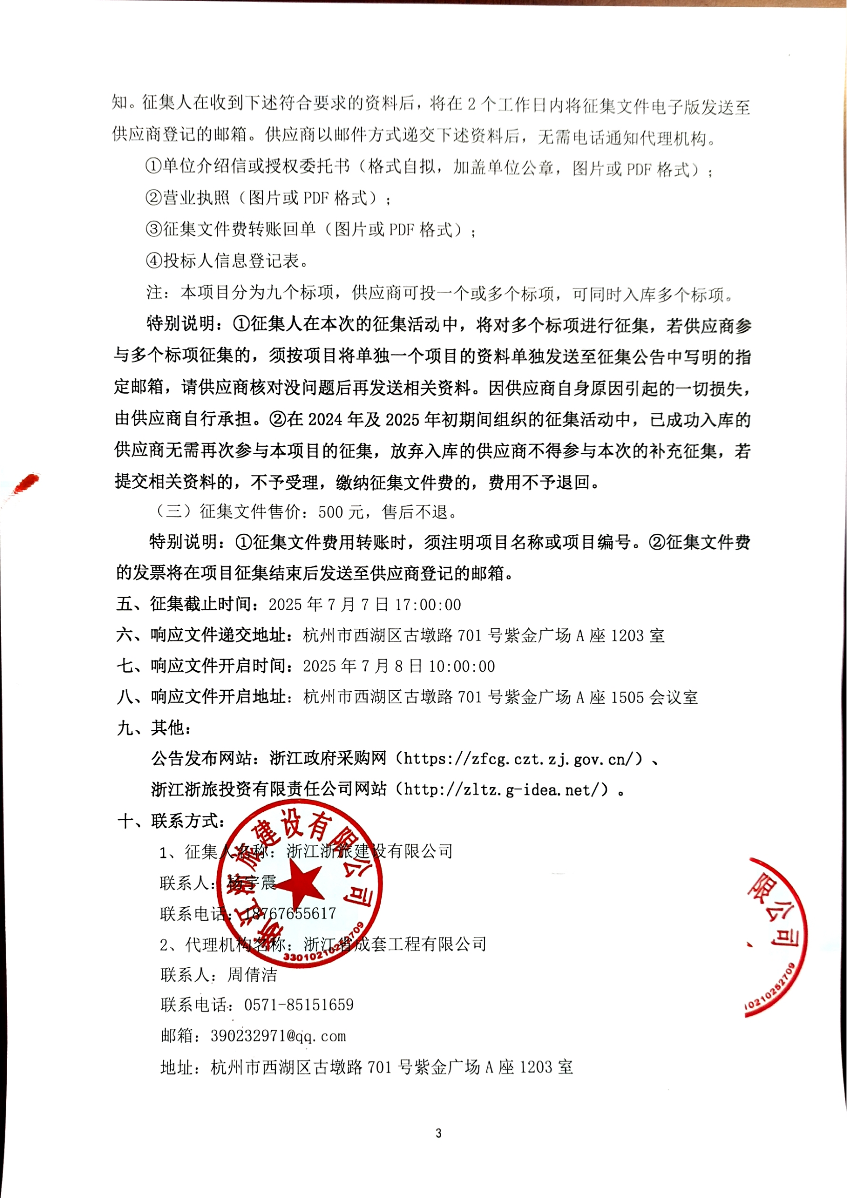 浙江浙旅建設(shè)有限公司供應(yīng)商庫(kù)補(bǔ)充征集(三)征集公告
